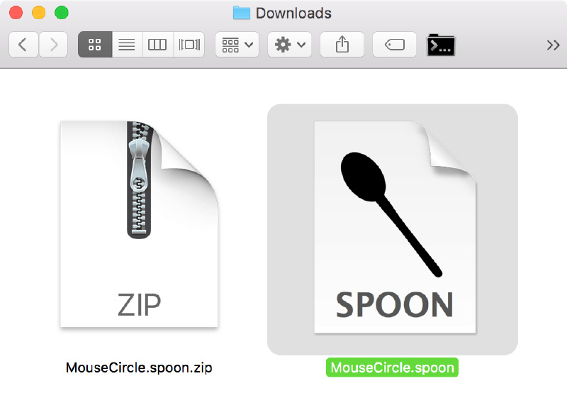 To install the spoon, download its zip file from https://github.com/Hammerspoon/Spoons/raw/master/Spoons/MouseCircle.spoon.zip, unpack it, and double-click on the resulting MouseCircle.spoon file. Hammerspoon will install the Spoon under ~/.hammerspoon/Spoons/.